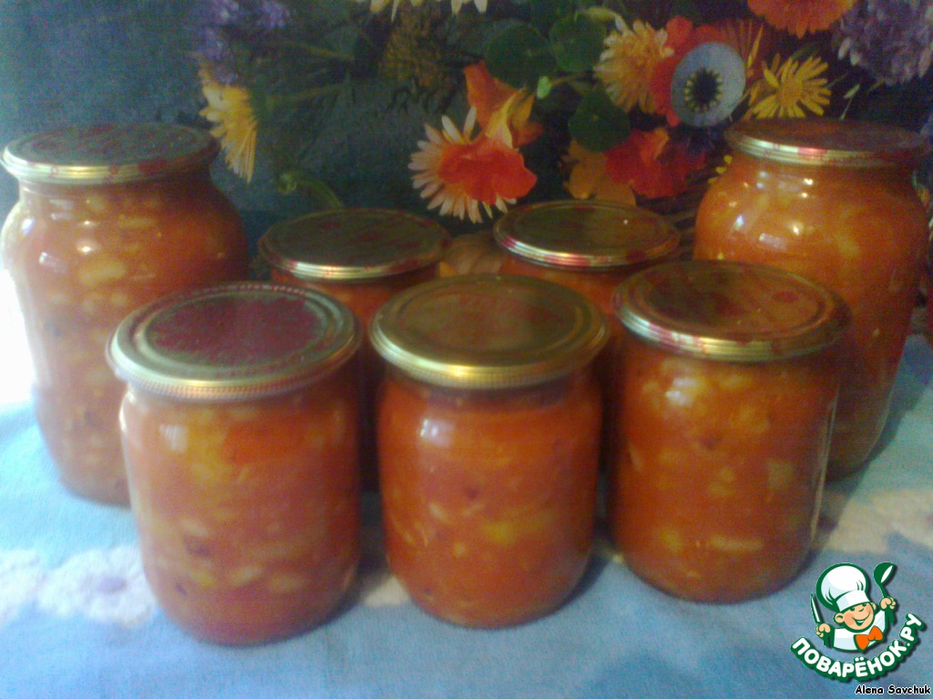 Рецепт «Фасоль с перцем в томатном соке»: