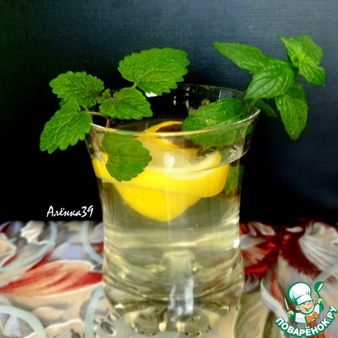 Воду вскипятить. Лимон, мяту и мелиссу помыть. Лимон разрезать на несколько частей. Все выложить в кипящую воду на 2-3 минуты. Снять с огня и остудить до теплого состояния.