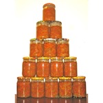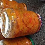 В самом конце добавляем чеснок, пропущенный через чеснокодавку, и соль по вкусу (у меня получилось примерно 2-3 ст. л.). Варим еше 4-5 минут, раскладываем в банки и закрываем.