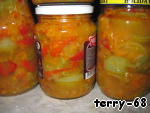 На сайте есть несколько рецептов салатов из зеленых помидоров, но мой немного отличается от них - в его состав не входят ни сахар, ни уксус. Салат придумала (может, и узнала у кого-то, но я этого не знаю) моя бабушка для дедушки, когда он заболел диабетом. Правда, после первого же сезона выяснилось, что готовить его надо на всю семью и много. Вот так и живет он в нашей семье уже больше 15 лет.