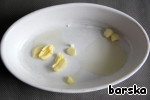 Форму для запекания смазать маслом, добавить 2 зубчика давленного чеснока.