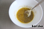 Смешать сок лимона, оливковое масло, соль, мёд, майоран.