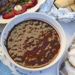 Второй вопрос: а бульон? Представьте, что вам к шашлыку подали томатный соус, в котором плавают жиринки, что вы подумаете? Правильно, что плохо помыли соусник. На бульоне - это "домашний" вариант, на любителя. В наших ресторанах не подают сацебели на бульоне.