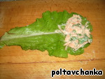 Берем лист салата. Желательно брать молодой салат, но если такого не имеется: