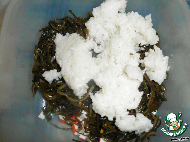 Рису даем немного остыть и добавляем его к остальным компонентам.