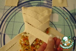 Заплести пирог косичкой как показано на фото...