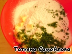 Укроп вымыть, обсушить и мелко нарезать. В миску просеять муку с содой и солью, добавить укроп и нарезанное кубиками масло. Вымесить все руками, чтобы масло полностью разошлось.