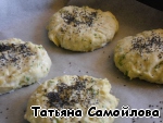 Тесто распластать руками в толщину примерно 2 см и вырезать лепешки. Выложить на противень, смазать небольшим количеством молока, посыпать маком и отправить в разогретую на 210 градусов духовку на 15 минут.
