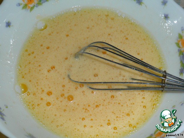 Растереть с сахаром яйца. Добавить муку и замесить тесто по густоте как сметана. Еще я добавила корицу для аромата, вместо более привычной ванили.