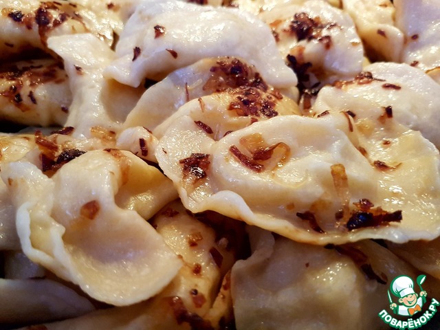 Полить готовые вареники зажаркой.