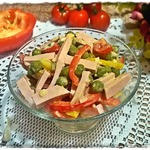 Почему склероз? Потому, что не помню, откуда взяла рецепт. Готовила некоторое время назад, сфотографировала, и фотографии были в мобильном довольно долго. А когда скинула их в компьютер, то ужаснулась, что не помню ни источника, ни названия салата. Вот и назвала по-своему. А судить уже вам.