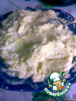 Смешать капусту и пюре, добавить яйца, муку.