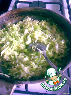Капусту мелко нашинковать и потушить с солью и перцем.