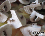 Нарезаем шампиньоны на 4 части.