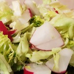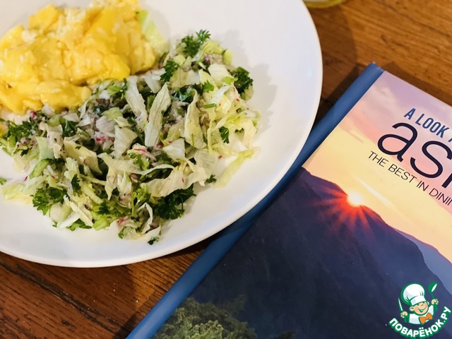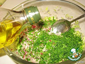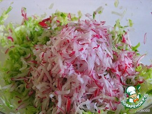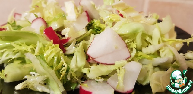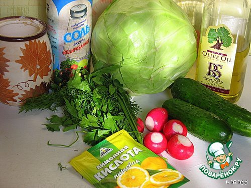 Освежающий салат из молодой капусты, огурцов и редиса.