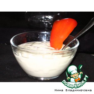 Рецепт взят из "Большой книги салатов и закусок" в разделе "Диетические приправы". Отличие от майонеза в том, что нет масла, а следовательно, низкая жирность и калорийность.
