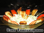 Обжарить хлеб. За 30 минут до подачи салата, заправить его майонезом с добавлением горчицы (я заправляла Ложным майонезом https://www.povarenok.ru/recipes/show/59292/ ) На это время салат лучше убрать в холодильник.