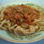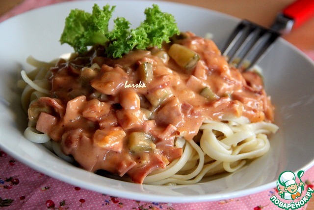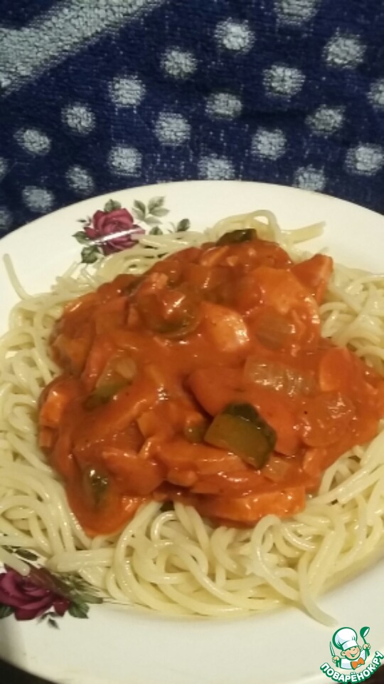 Всё готово, можно подавать с вермишелью, спагетти, любой другой пастой, с гречкой, с отварным картофелем или пюре.