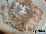 Готовим фарш. Я добавила лук, соль и специи (черный перец, душистый перец, специи для фарша).