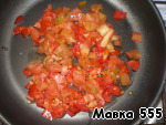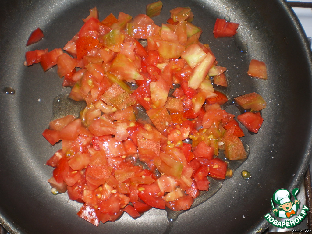 Далее вливаем на сковороду немного подсолнечного масла, добавляем туда помидоры, соль, перец и ставим на средний огонь буквально на пару минут