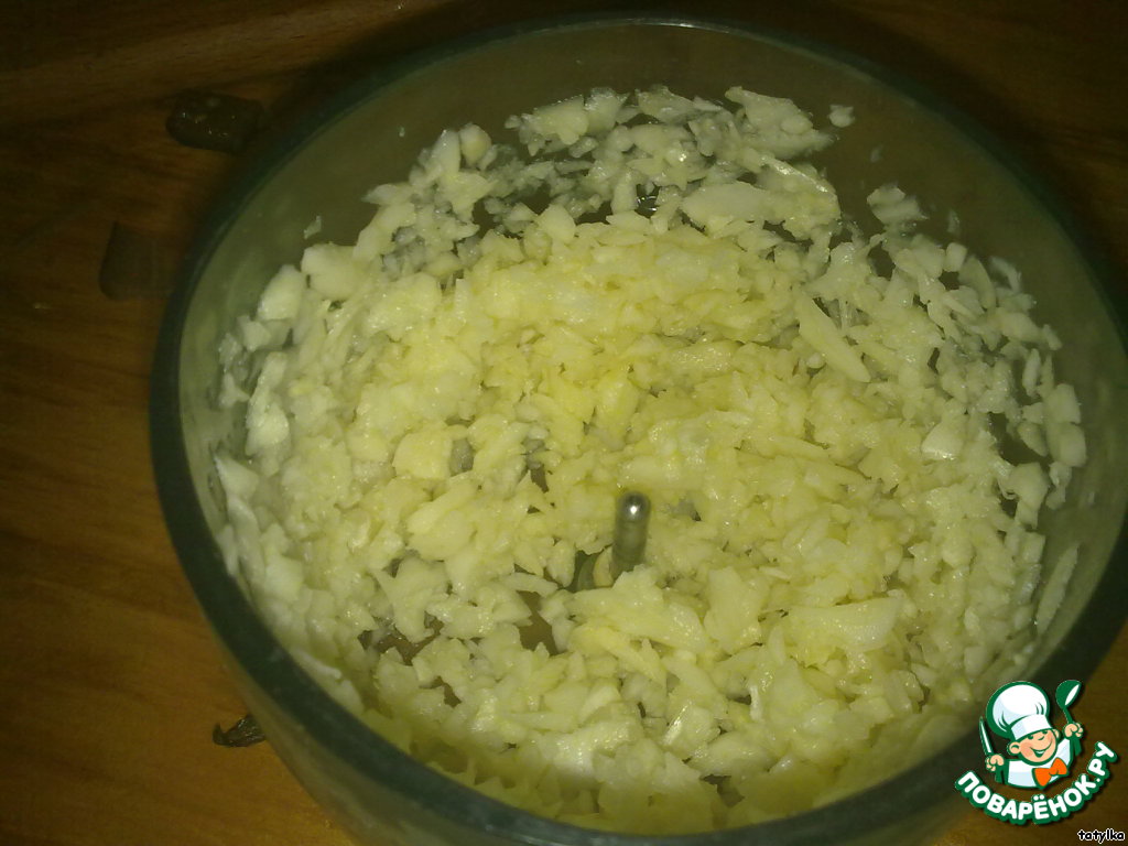 Чеснок нарезать мелко (я это сделала в блендере, главное - именно резать)