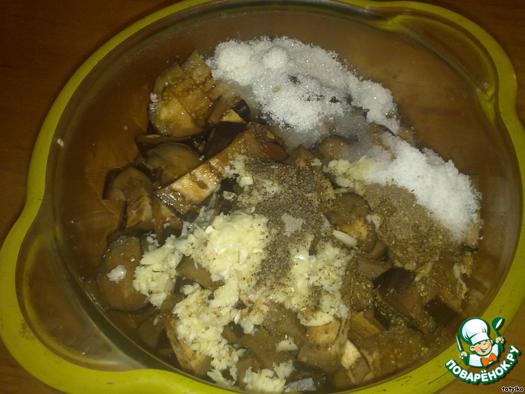 Добавить все ингредиенты к баклажанам