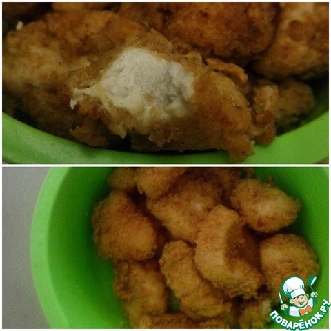 Вкус панировки нужно точно подбирать, эксперементировать с травами - возможно, удастся получить вкус лучше, чем в Ростиксе.
