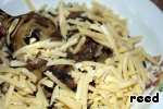 Все переложить в тарелку, посыпать тертым сыром и перемешать. Остудить. Начинка готова.