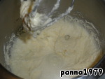 Добавляем в наше тесто просеянную муку и разрыхлитель. Замешиваем некрутое тесто.