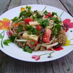 Салат вкусно кушать в теплом виде сразу после приготовления, но если дать ему настояться, вкус будет более ярким и пикантным. Приятного аппетита!