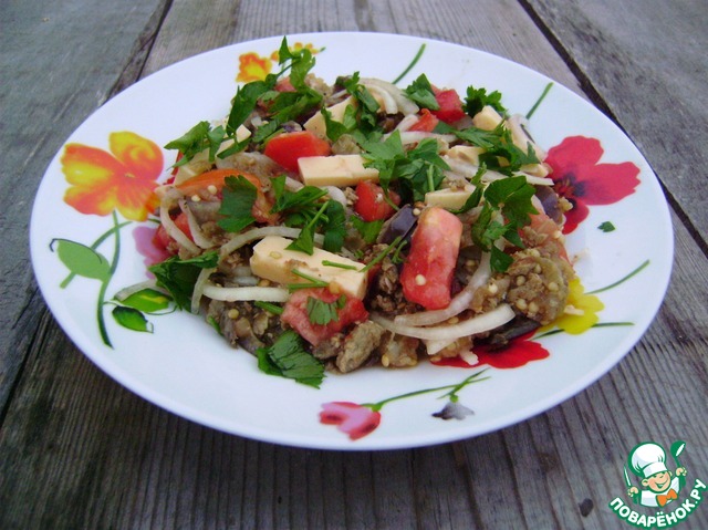 Салат с баклажанами, томатами и сыром