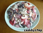 Теперь салат необходимо заправить (если вы этого не сделали раньше). С сыром салат куда оригинальнее и сбалансированнее на вкус.
