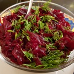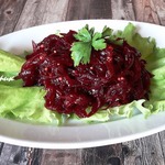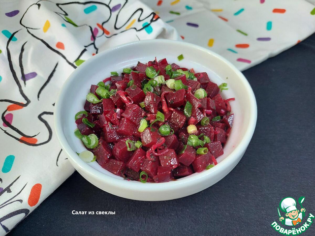 Легкий свекольный салат, немного промаринованный. За фото спасибо поваренку yuvl.