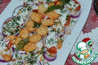 Прекрасный салат! Готовила для мужа, а он не любит морскую капусту с помидорами, пришлось заменить их горошком. Спасибо, автор!!!