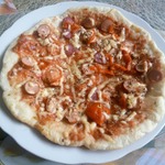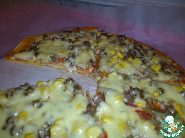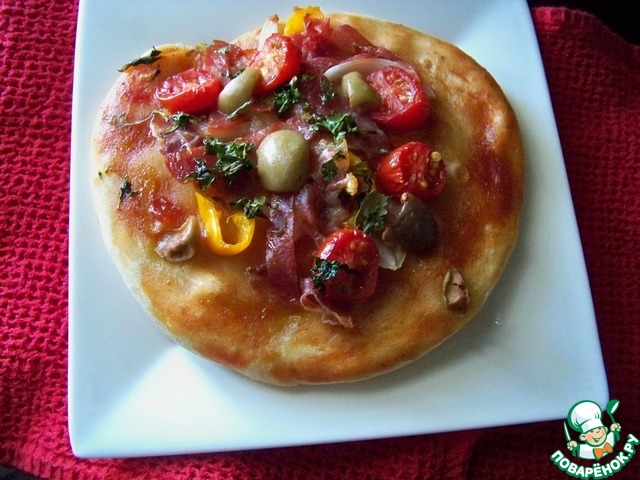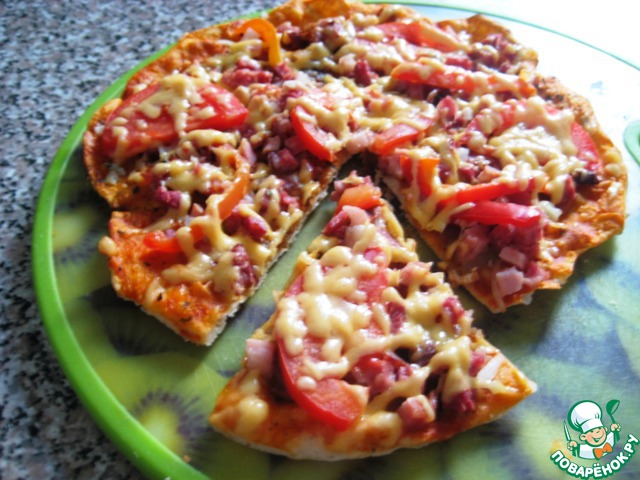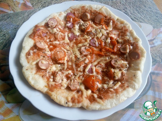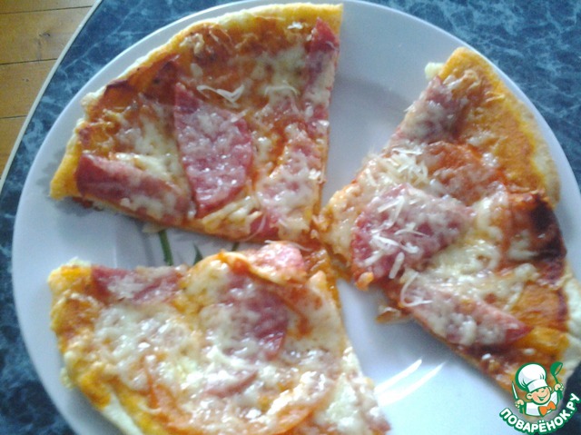 Моя семья, в особенности дети, очень любят пиццу. Дело в том, что летом мы живeм в деревне, а испечь еe там невозможно, так как духовки нет, а топить печь в жару - последнее дело. Купить пиццу или заказать тоже нереально. Дело усугубилось тем, что по центральному радио (которое единственное СМИ в нашем месте) транслируют, с частотой в 30 минут, рекламу «Пицца в кафе «Жар-пицца» звони круглосуточно... » Ну... и телефон прилагается. Объяснить пятилетнему сыну, что круглосуточная доставка - не значит доставка по всей области, не удалось. Пришлось искать выход. Америку я не открыла, но результатом остались довольны все.