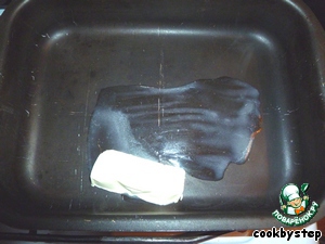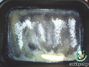К растопленному маслу добавить 2 ст. л. сахара. Немного прогреть, чтобы сахар растопился. Огонь под формой выключить.