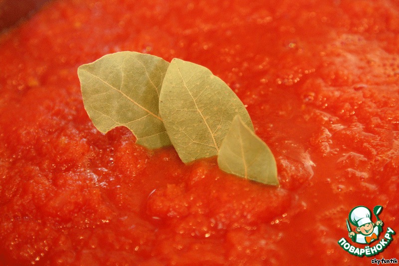 В пюре мы добавляем соль, сахар, специи и лавровый лист.