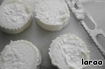 Мягкий козий сыр нарезать на кружочки толщиной примерно 1 см.