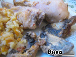Далее выкладываем в форму в 1 слой грибы и голени. Ставим в духовку. 220 градусов, 40-50 минут.