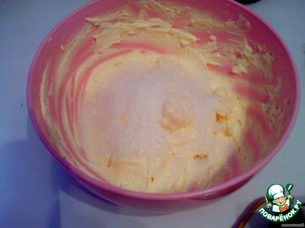 Добавить очень мелкий сахар (можно измельчить его миксером почти до состояния пудры), снова хорошо взбить.