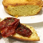 Ну и вот мой вариант подачи хлеба: с копченой грудинкой, вялеными томатами и свежим тимьяном.
