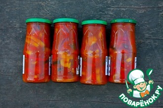 Я использовала банки с закручивающимися крышками. У меня получилось из указанного количества продуктов 9 банок по 350 гр.