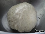 Приготовим тесто. Муку, соль с 2 ст.л. раст. масла и 120 мл теплой воды перемешать. Минут 5 хорошо вымесить тесто. Скатать в «колобок» и смазать раст. маслом.