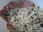 Далее делаем фарш. Я брала смешанный мясной (свинина, говядина). Отваривала также рис, на этот раз смесь бурого и дикого (так захотела).