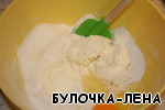 Смешать муку, 125 г размягченного масла, 50 г сахара, 1 ст. л. сметаны, 1 ст. л. разрыхлителя, 1 яйцо, творог, ванильный сахар.