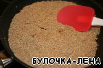 Немного поджарим получившуюся крошку на среднем огне до легкого подрумянивания, пока масса не даст аромата жареной овсянки и орехов. Интенсивность поджарки выбирайте из индивидуальных предпочтений, возможно, вам больше нравится, вообще, сырое.