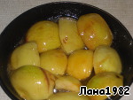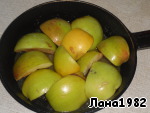 Тушить на сильном огне в течении 10 минут. Яблоки перевернуть и тушить еще 5 минут.