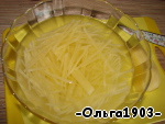 • В кипящую воду опустить картофель на 1-2 минуты, он должен быть полусырым, хрустящим.