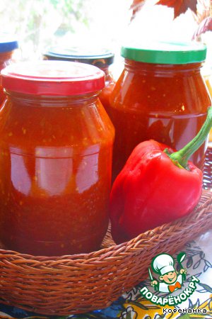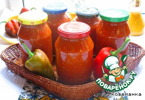 Как Вы заметили из списка ингредиентов, главное в этом томате - помидоры и сладкий перец. Конечно, Вы можете придумать свое соотношение овощей, но я привыкла варить именно так - 3:2 (т. е. 3 части помидоров и 2 части перца). При таком балансе томат все-же остается томатом, а не превращается в "ложное лечо".)))