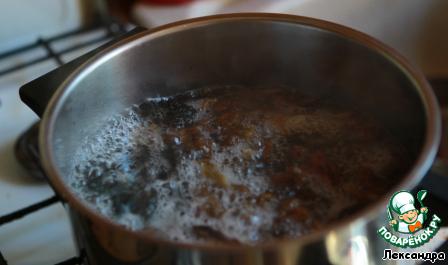 • Варим бульон из грибов, после чего вынимаем грибы и режем кубиками.